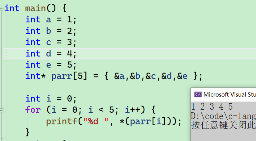 - 首先定义了一个五行五列的二维数组,还定义了一个数组指针,这个数组指针指向了有4个元素,每个元素是int类型,然后将a赋值给了p