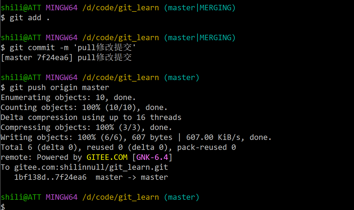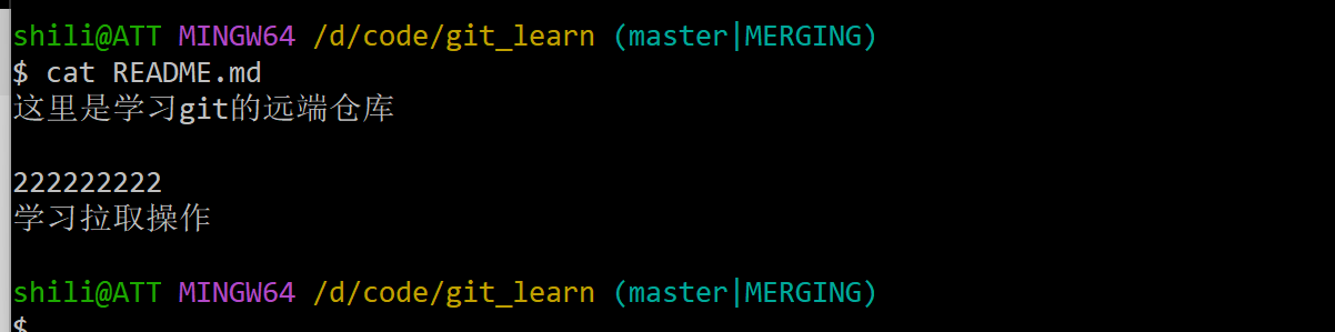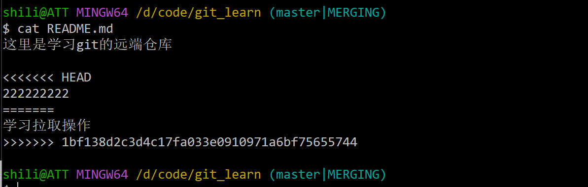 - 这里又回到冲突那里了,然后我们需要进行手动修改一下然后再进行提交