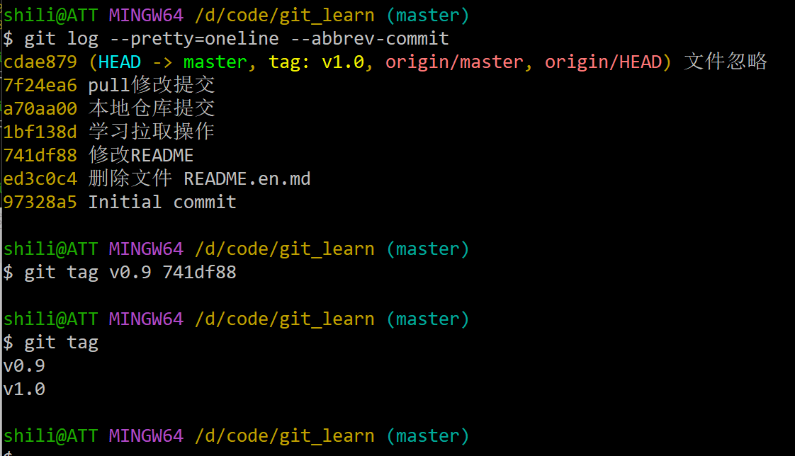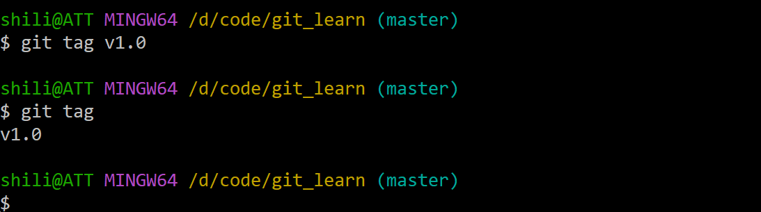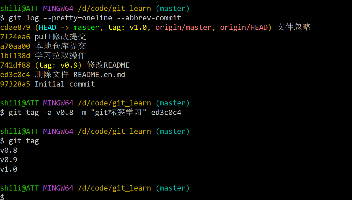 - 我们这里还可以指定带有说明的标签,-a指定别名,-m指定说明文字