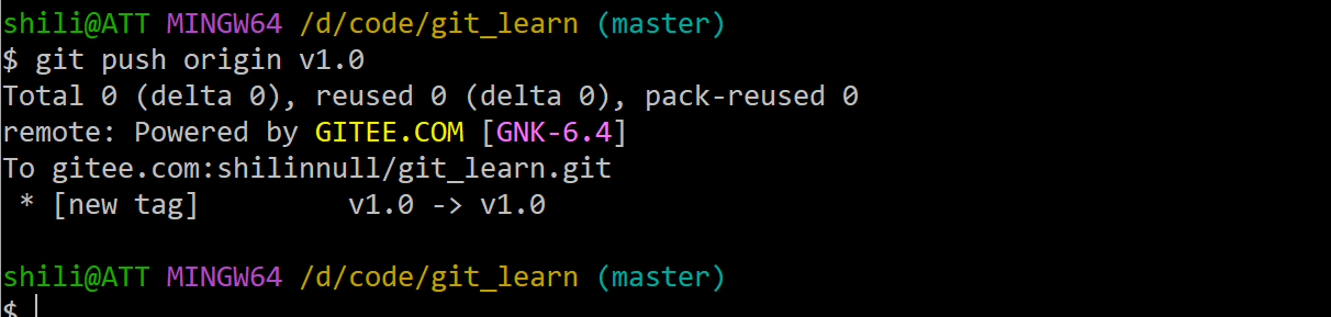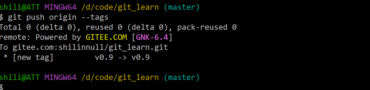 - 如果本地仓库有很多标签,可以一次性全部推送到远端