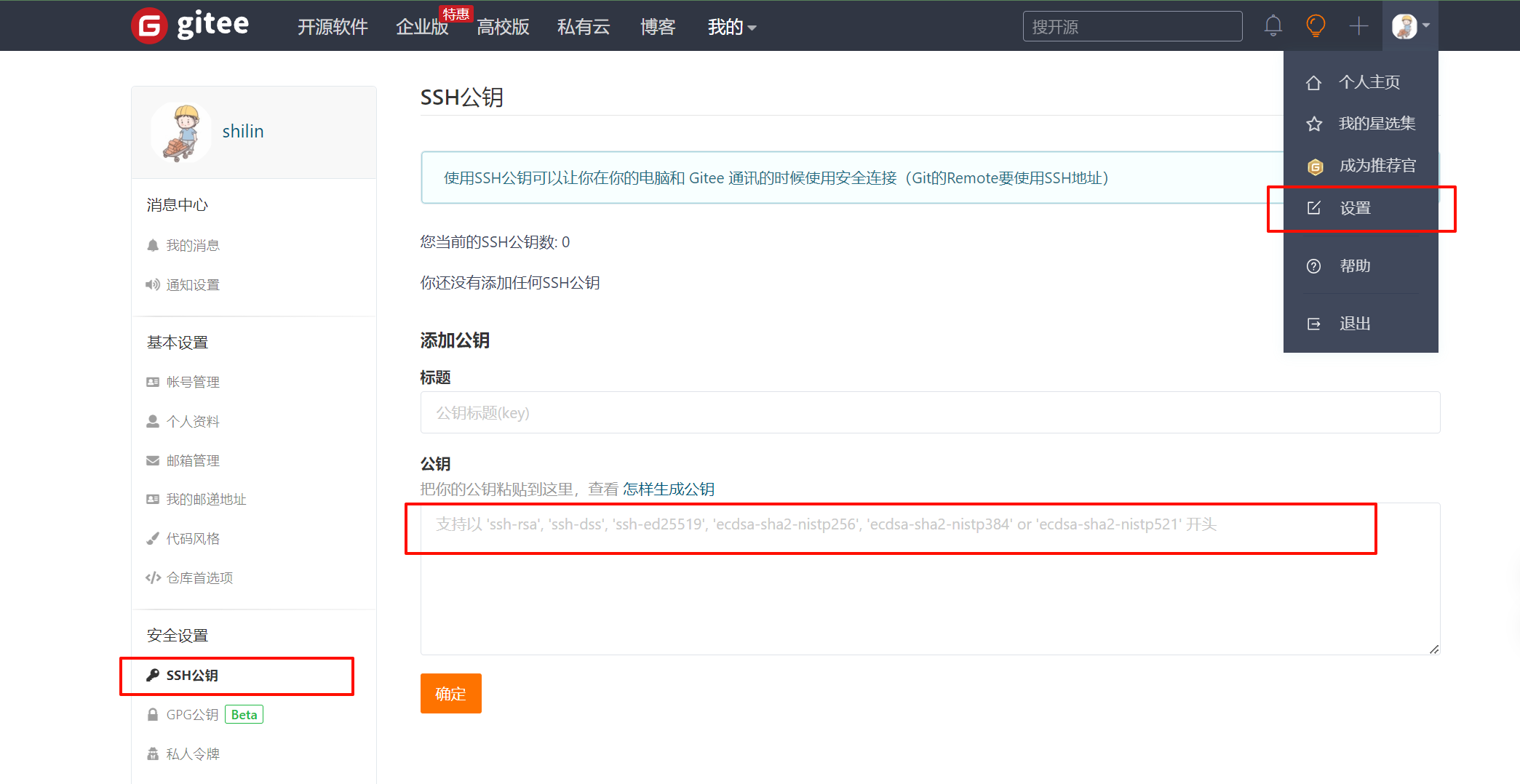 - 然后粘贴到刚刚的那个网站的公钥栏里就可以了,标题随便写就可