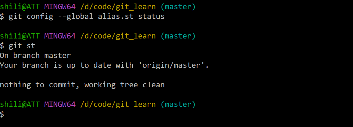 - 在使用git的时候,我们有的时候使用命令太长太麻烦了,我们可以将git命令进行重命名成一个简短的,我们这样操作: