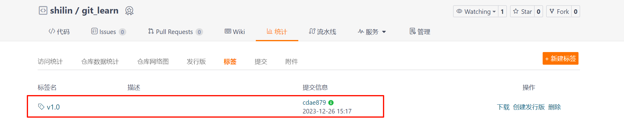 - 如果要进行删除标签,就要先从本地仓库里删除,然后再推送一次,进行更新