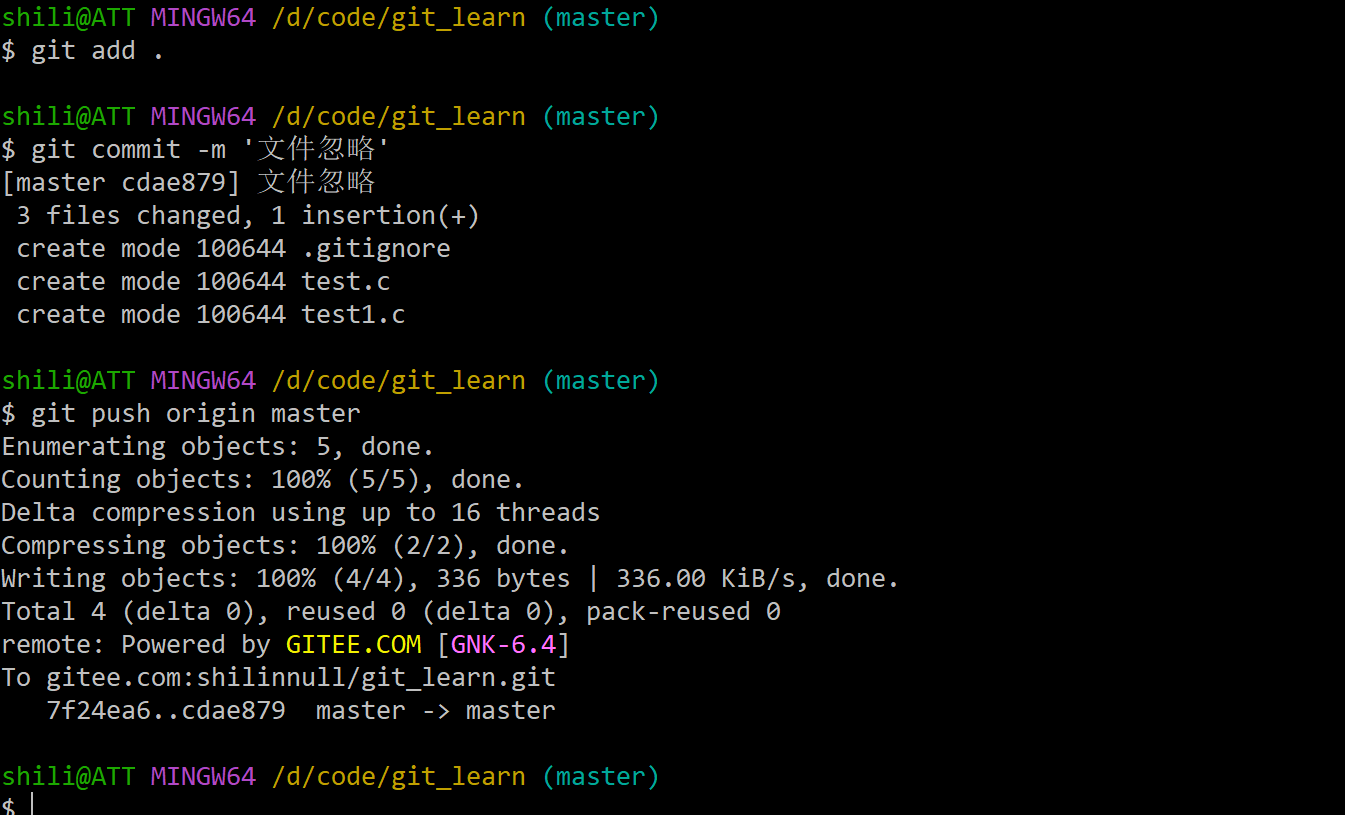 - 但有些时候,你就是想添加⼀个文件到 Git,但由于这个文件被 .gitignore 忽略了,根本添加不了,那么可以⽤ -f 强制添加: