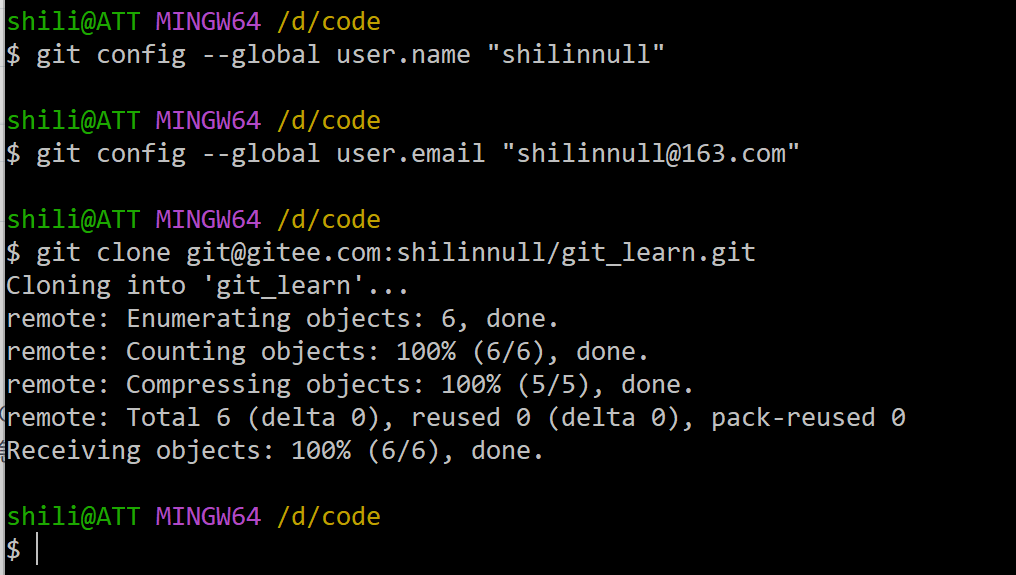 - 首先就是配置用户名和邮箱然后然后直接使用这个命令