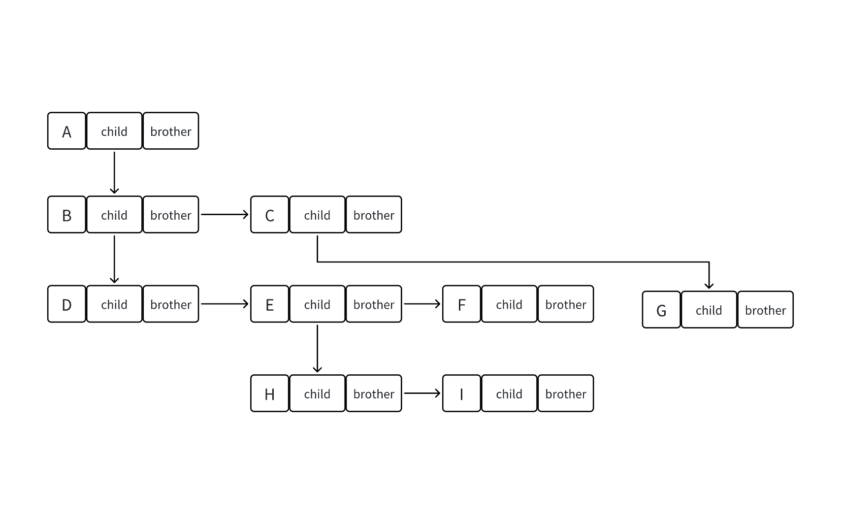 struct Node* brother; // 指向其右边的下一个兄弟结点