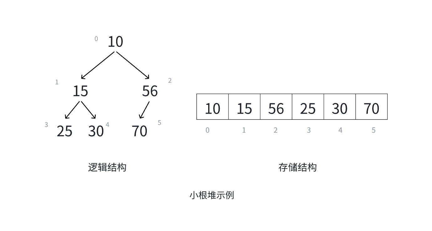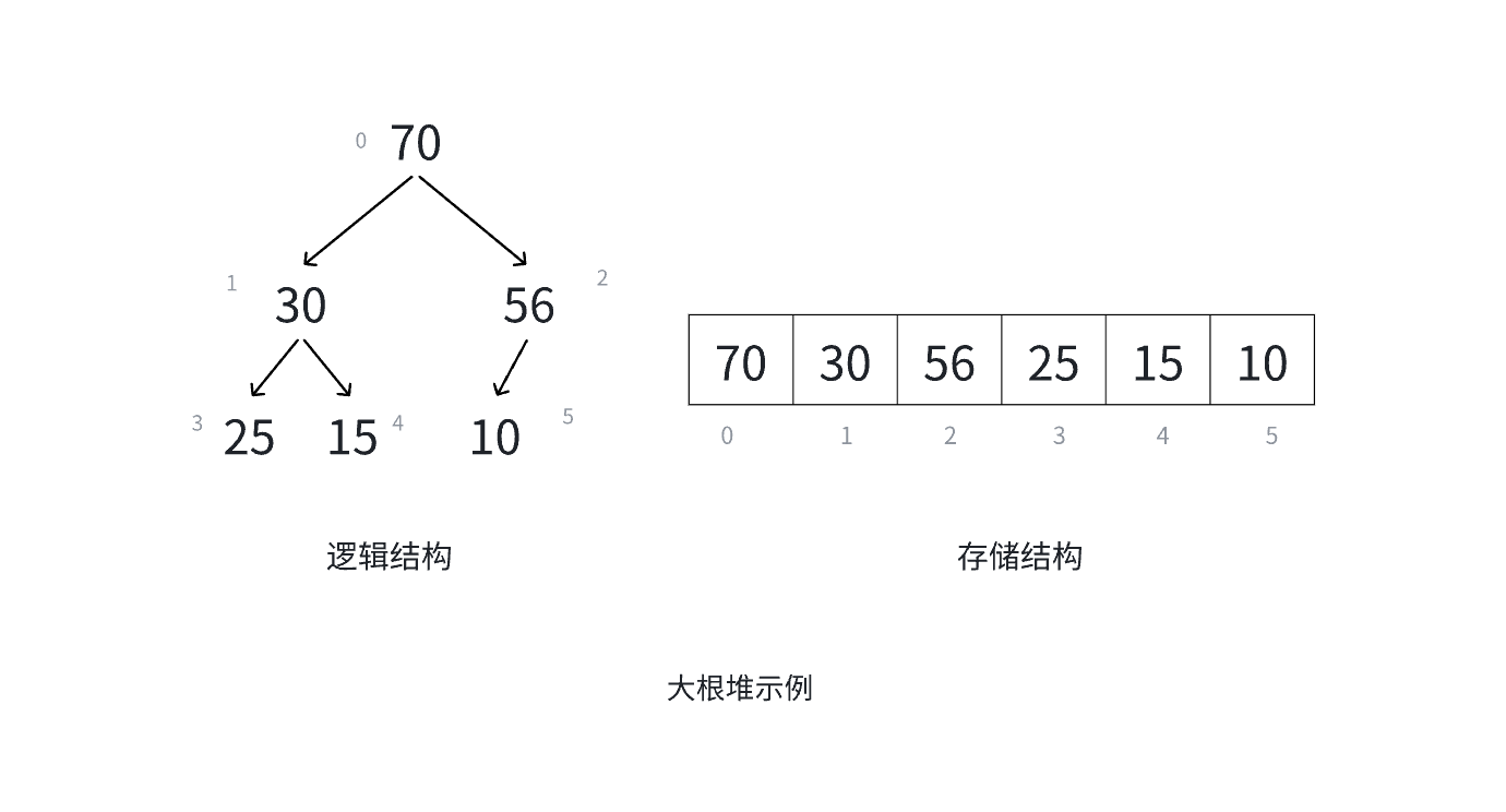 现实中我们通常把堆(一种二叉树)使用顺序结构的数组来存储,需要注意的是这里的堆和操作系统虚拟进程地址空间中的堆是两回事,一个是数据结构,一个是操作系统中管理内存的一块区域分段。