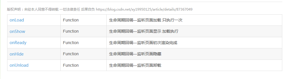 //app.js App({ onLaunch: function (options) { // 小程序初始化完成时触发,全局只触发一次。 // options说明: // path:打开小程序的路径 // query 打开小程序的query // scene 打开小程序的场景值 // shareTicket 转发信息相关 // referrerInfo 当场景为由另一个小程序或公众号或App打开时,返回此字段 console.log('app >> onLaunch , options::',options); }, onShow: function(options){ // 小程序启动,或从后台进入前台显示时触发 // 参数与onLaunch一致 console.log('app >> onShow, options :: ',options); }, onHide:function(){ //小程序从前台进入后台时触发。 console.log('app >> onHide'); }, onError:function(error){ // 小程序发生脚本错误,或者api调用失败时触发。 // error String 错误信息,包含堆栈信息 console.log('app >> onError , error::'+error); }, onPageNotFound(Object){ // 基础库1.9.90开始支持 // 小程序要打开的页面不存在时触发。 // Object参数说明: // path String 不存在的页面路径 // query object 打开不存在页面的query // isEntryPage Boolean 是否本次启动的首个页面 console.log('app >> onPageNotFound , Object :: ',Object); //注:如果开发者没有添加 onPageNotFound 监听,当跳转页面不存在时,将推入微信客户端原生的页面不存在提示页面。 // 如果 onPageNotFound 回调中又重定向到另一个不存在的页面,将推入微信客户端原生的页面不存在提示页面,并且不再回调 onPageNotFound。 } })