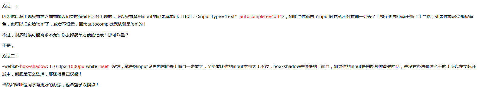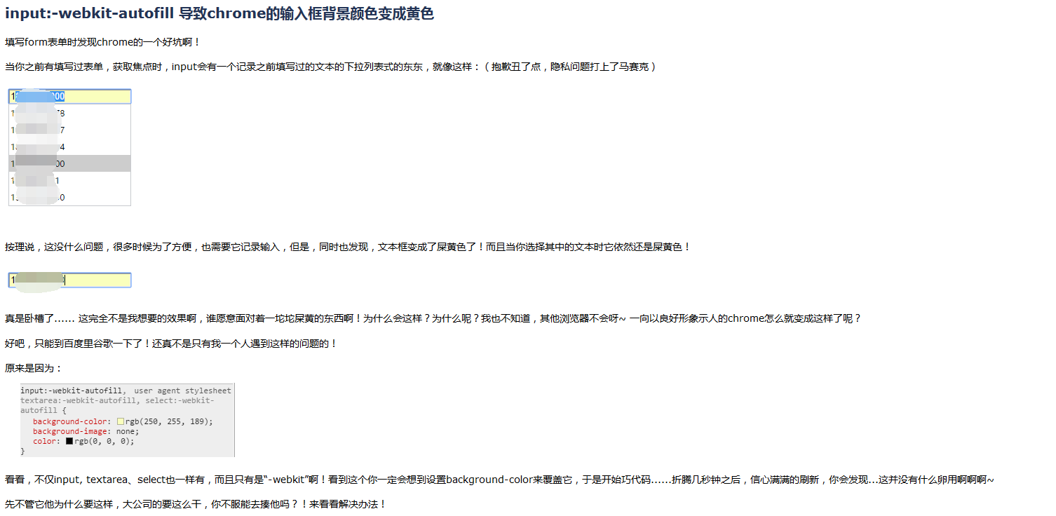 chrome表单自动填充去掉input黄色背景解决方案 input:-webkit-autofill 禁用