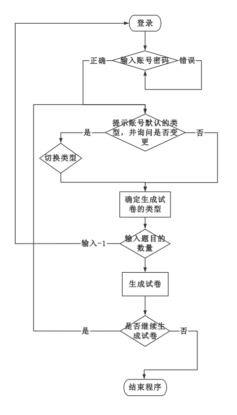 3、题目数量的有效输入范围是“10-30”(含10,30,或-1退出登录),程序根据输入的题目数量生成符合小学、初中和高中难度的题目的卷子(具体要求见附表)。同一个老师的卷子中的题目不能与以前的已生成的卷子中的题目重复(以指定文件夹下存在的文件为准,见5);