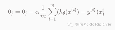 梯度方向由J(θ)对θ的偏导数确定,由于求的是极小值,因此梯度方向是偏导数的反方向。更新公式为为: