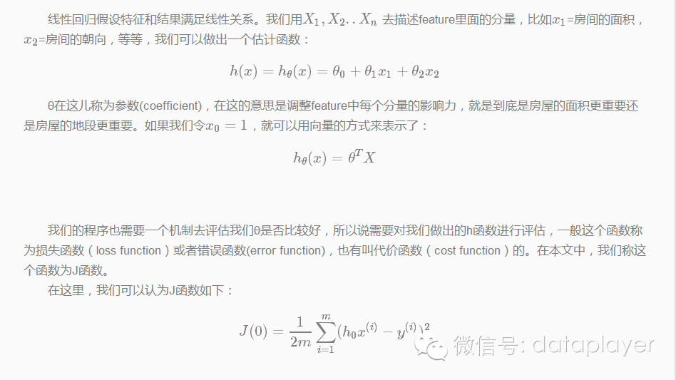这个错误估计函数是去对x(i)的估计值与真实值y(i)差的平方和作为错误估计函数,前面乘上的1/2m是为了在求导的时候,这个系数就不见了。至于为何选择平方和作为错误估计函数,就得从概率分布的角度来解释了。