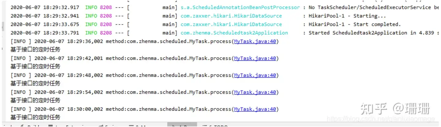 然后在启动类中用注解@EnableScheduling进行标注,表明此类存在定时任务。在定时任务执行的方法之上添加注解