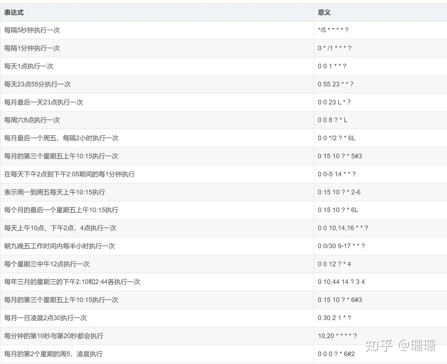 cron:表达式可以定制化执行任务,但是执行的方式是与fixedDelay相近的,也是会按照上一次方法结束时间开始算起。