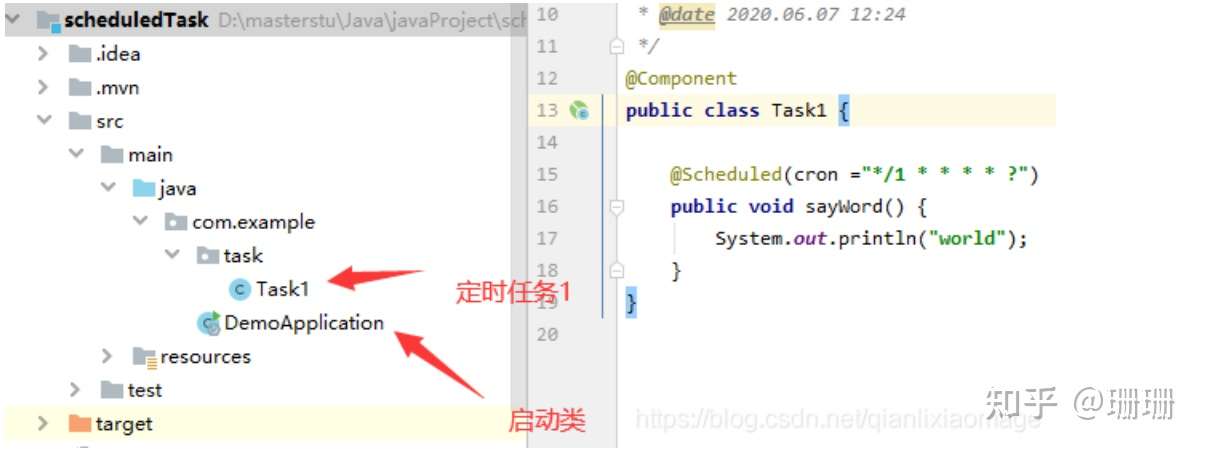 当然,定时任务也可以放在其他类中,例如创建类Task1