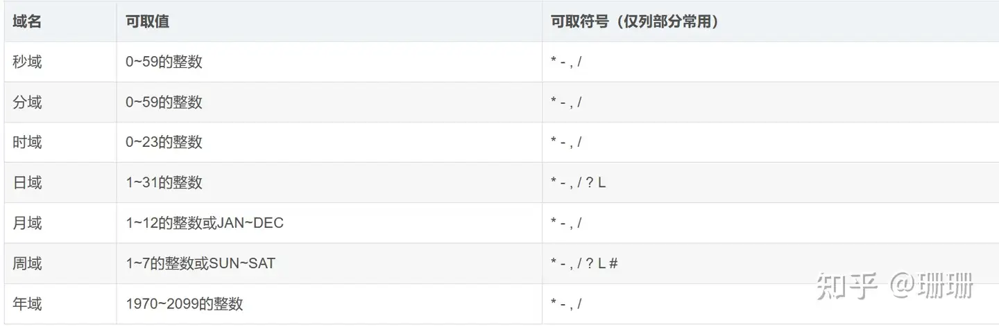 cron表达式是一个字符串,分为6或7域,每两个域之间用空格分隔;