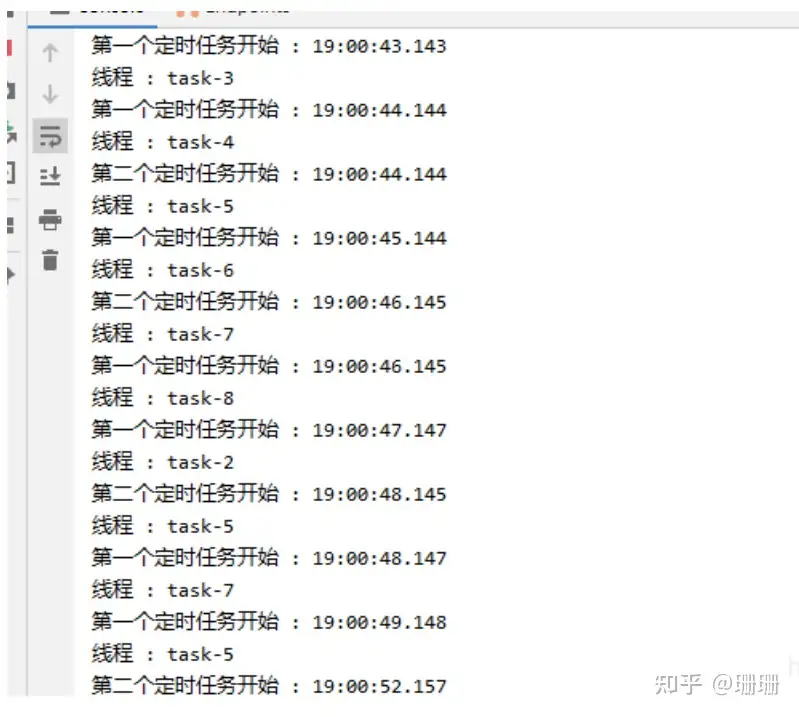 System.out.println("第一个定时任务开始 : " + LocalDateTime.now().toLocalTime() + "\r\n线程 : " + Thread.currentThread().getName());