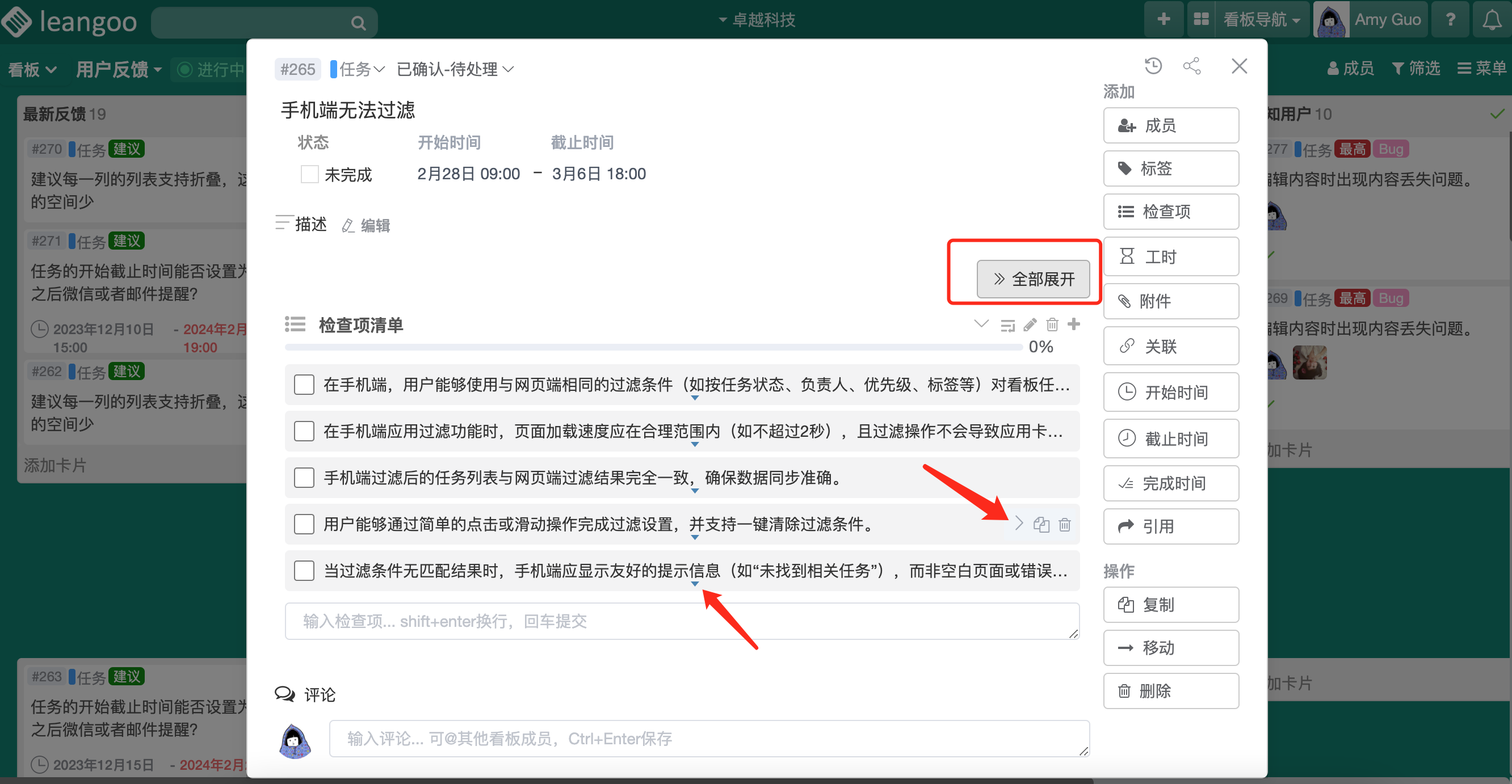 为了提升卡片管理的灵活性,尤其是在检查项较多时,优化操作效率。 在卡片中新增检查项的折叠功能,支持批量或单个折叠,减少卡片内容的视觉干扰,帮助用户更聚焦于关键信息。