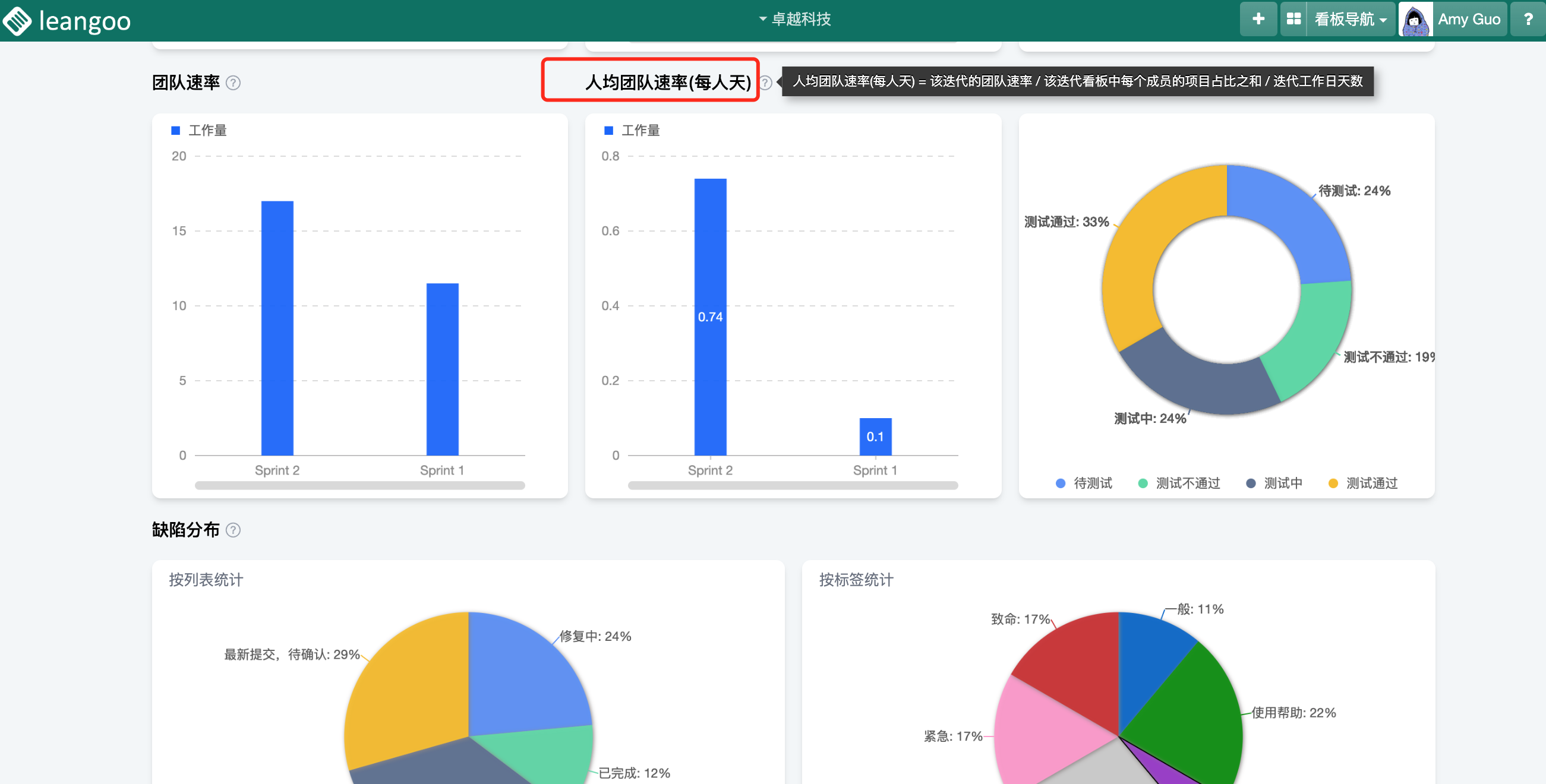 人均团队速率:清晰展示团队成员的工作效率,为资源分配和任务规划提供数据支持,优化团队生产力。