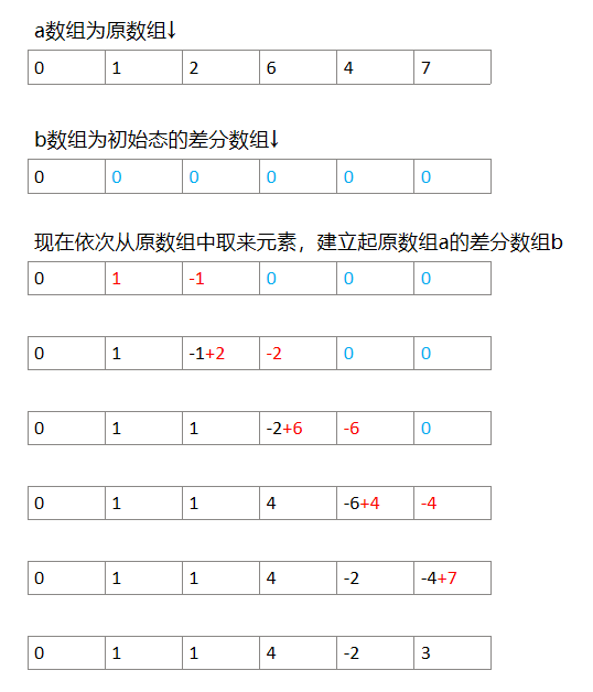 (i)根据原数组建立。b[i] = a[i] - a[i-1]