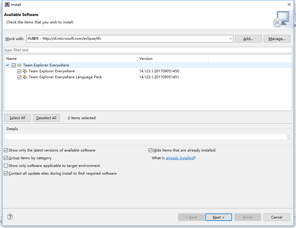 2.4.选中“Team Explorer Everywhere”,点击“Next