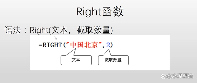 Right函数:英文是右边的意思,就是从右边开始截取。函数的有两个参数:第一个参数是需要截取的字符串,第二个参数是截取的数量,数量必须大于0,也可以为空,空的值默认为1位。