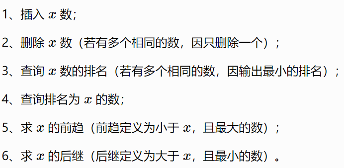int key[maxn],cnt[maxn],ran[maxn],siz[maxn],son[maxn][2],op,n,num=0,x,root=0;