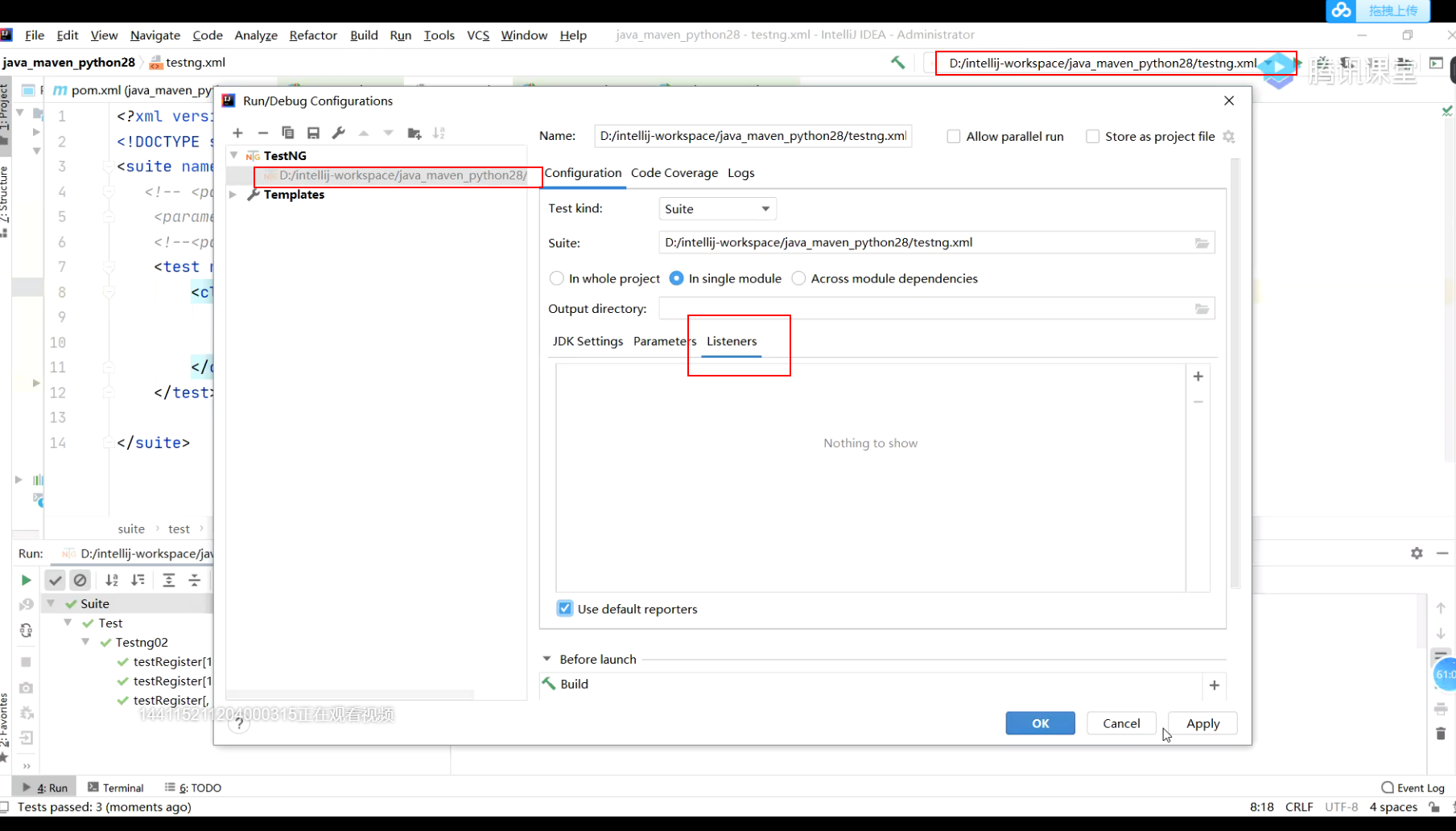 - step1:edit configutation -->listeners-->use default reporters勾选上