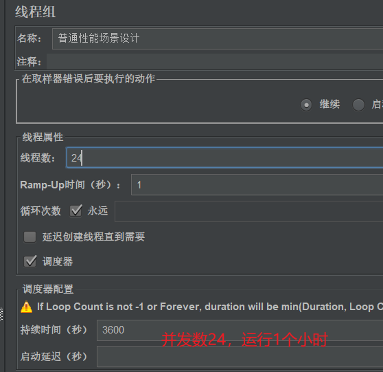 普通线程组设计与阶梯线程组设计如下图 并发数24,运行1个小时: