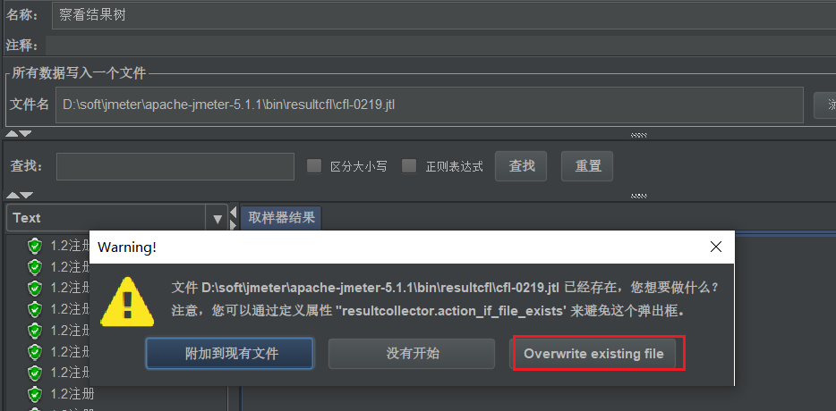 - 查看结果树,保存到一个文件,文件格式为jtl