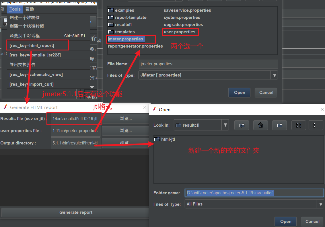 - Tools-生成html报告-加载jtl,配置文件,写入到一个空文件夹下,点生成,就能生成测试报告了
