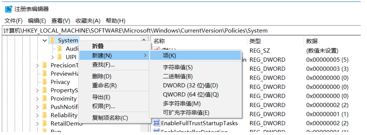 2,进入目录进入\HKEY_LOCAL_MACHINE\SOFTWARE\Microsoft\Windows\CurrentVersion\Policies\System\