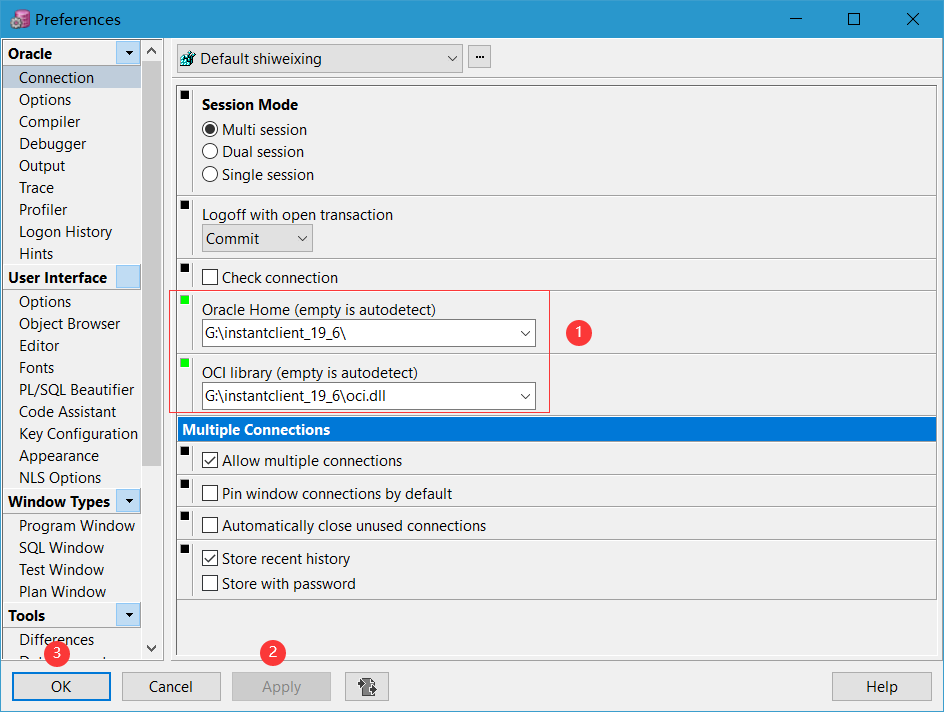 之后点击Apply→OK,关闭该plsqldeveloper客户端。