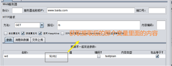 (4) 在线程组下再创建一个http请求,在请求里获取正则表达式匹配到的