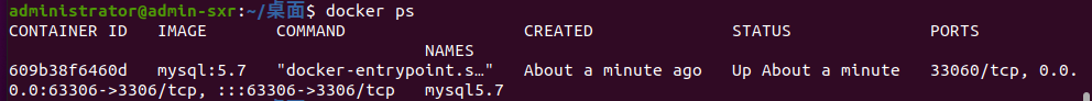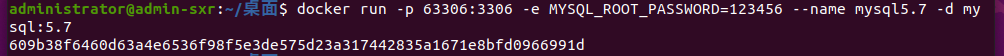 docker run -p 63306:3306 -e MYSQL_ROOT_PASSWORD=123456 --name docker_mysql5.7 -d mysql:5.7