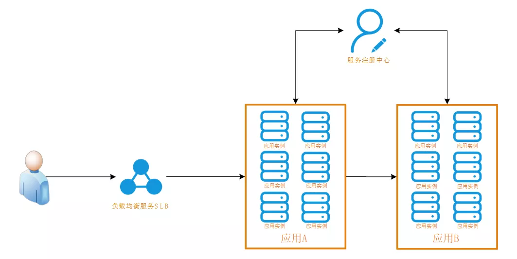 在一个简单的微服务架构中,如果某应用处于整个链路的入口位置,它的前端一般会挂上负载均衡组件(上图中的应用 A),以承接来自于最终用户的业务请求。这类应用在进行生命周期管理的时候,复杂度会更高,为了确保应用在新版本发布过程中的平衡稳定,会经过如下的步骤: