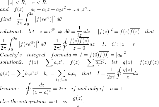 学弟问的一道复变题,解法一迷惑性较强,实际上它不解析,不能应用柯西积分公式,解法二才是正确解法,吃饭时候想到的回来敲出来,手机敲LaTeX真的麻烦啊(>﹏<)