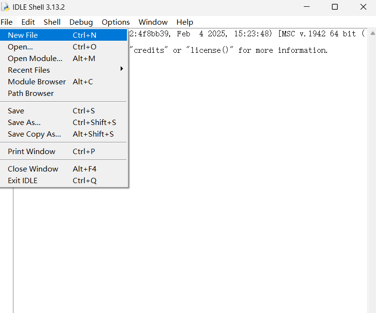 打开IDLE熟悉运行方式,掌握基础功能,例如点击“file”新建文件、“save”保存文件。