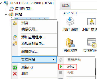 4、 点开网站、default web site、管理网站、启动