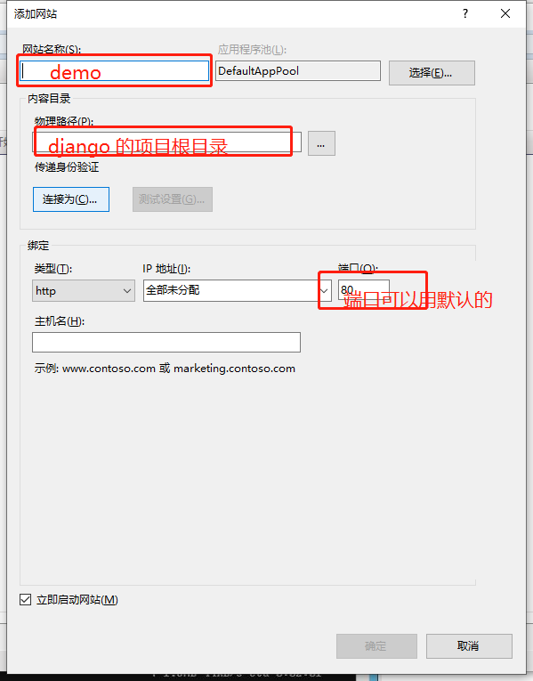 9、 在IIS里添加项目网站