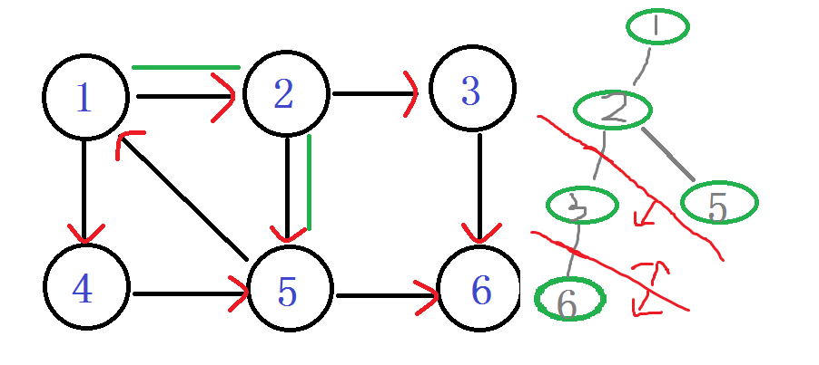 ps:你会发现在有向图旁边的那个丑的(划掉)搜索树 用红线剪掉的子树,那个就是强连通分量子树。每次找到一个。直接。一剪子下去。半个子树就没有了。。