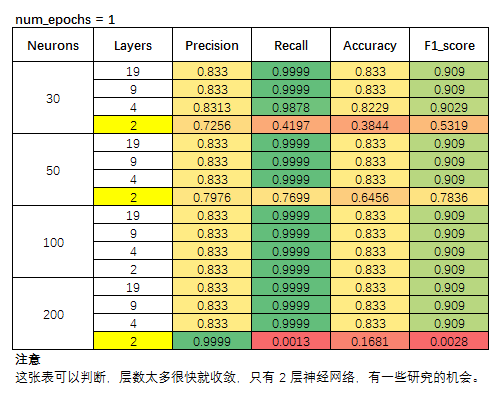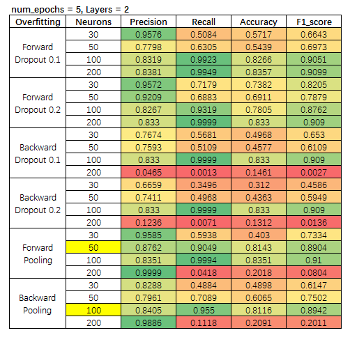 研究方法也简单,就是按照 【层数、神经元数量、Dropout Rate、Pooling、Num of Epochs】,对模型指标进行考察。