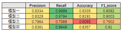 我们选择的标准,保证正例精准度(precision)情况下,保证 F1 不小。 选出两个模型。