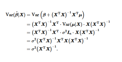 我们用 OLS,以及同方差假设,以及变量之间的协防方差阵,反推出系数矩阵的逆矩阵。用于估计系数向量,beta 。