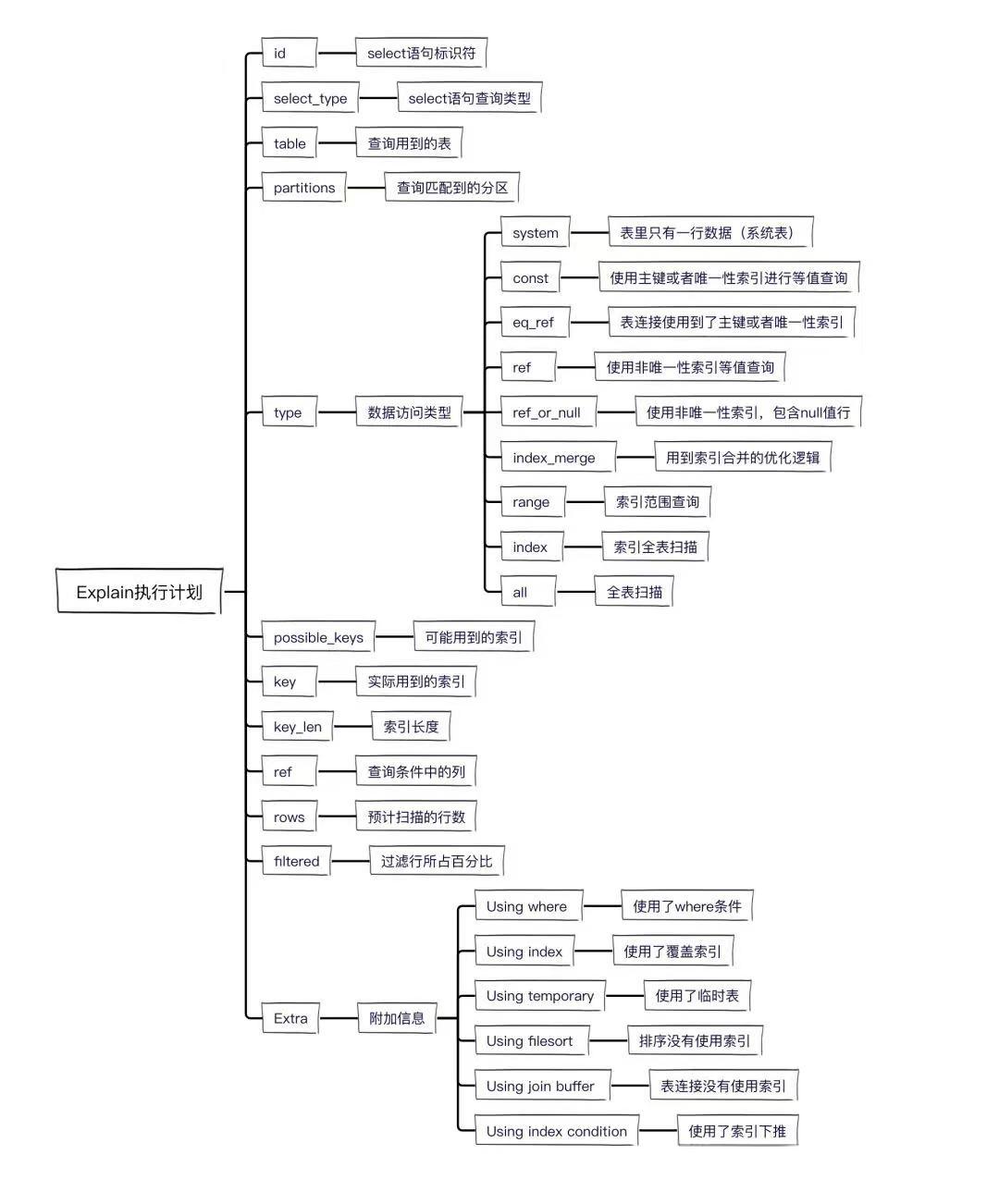 如explain select * from test1 where id=1;会出现:id selecttype table type possible_keys key key_len ref rows extra各列。