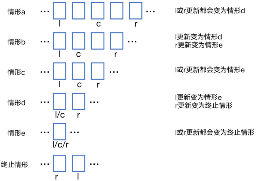 - l + r 为偶数时,l = r,与进入while的条件矛盾,故 l = c 的假设与 l + r 为偶数互相矛盾。