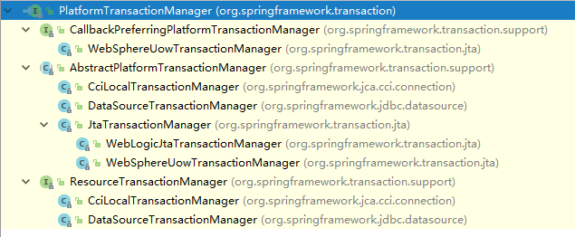 PlatformTransactionManager 是事务处理的核心,它有诸多的实现类,如下: