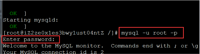 执行上面命令:输入账户进入MySQL,不需要输入密码直接按回车