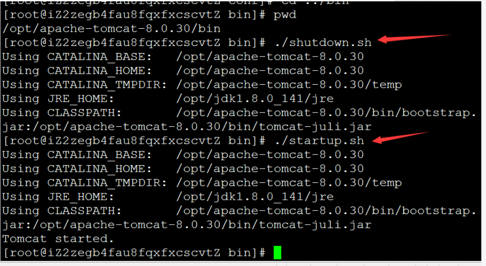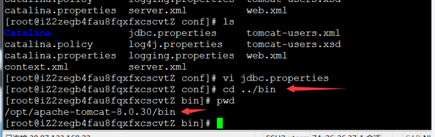 命令:cd /opt/apache-tomcat-8.0.30/bin