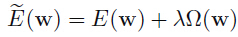 如上图,通过在选定M的基础上不同的初始化权重导致不同的结果,结果显示M=8的时候验证集上的错误最少(个人:我也看不出来是8的时候最好)。同样的,在实际中,我们也是通过画这种图来选择M的值。而且就拿之前的多项式拟合来说,是先选取一个较大的多项式阶数也就是,然后在误差函数上加上一个正则化项来防止过拟合: